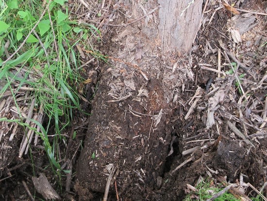 本当はもうヒラタ幼虫は採る必要もありませんでしたが、半分砂に埋もれた材があったので調べてみました。