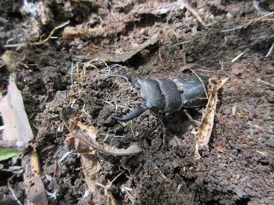 材をひっくり返すとヒラタの♂成虫がいました。まあまあの大きさです。