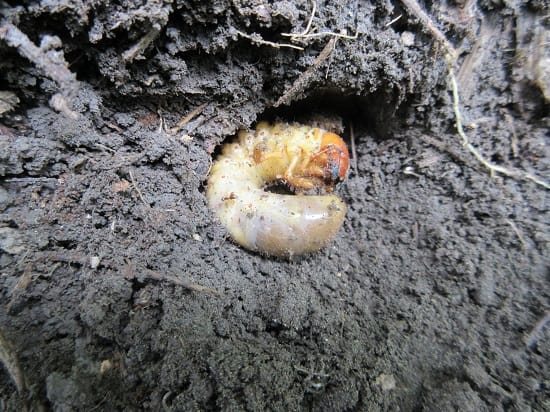 頭部はヒラタクワガタのように凶暴な顔で体全体が薄い褐色をした、少し小さめのカブトムシ幼虫ほどもある見たことのない大きなコガネムシ幼虫?がいました。